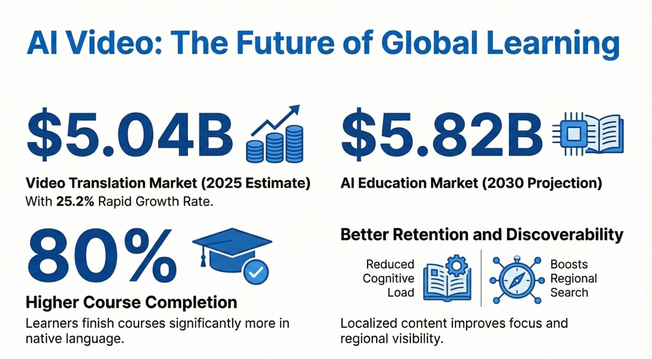 The numbers tell a compelling story of a world hungry for localized knowledge. According to recent market analysis from Dimension Market Research, the global AI video translation market is projected to reach approximately $5,039.4 million by late 2025, growing at a staggering CAGR of 25.2%.