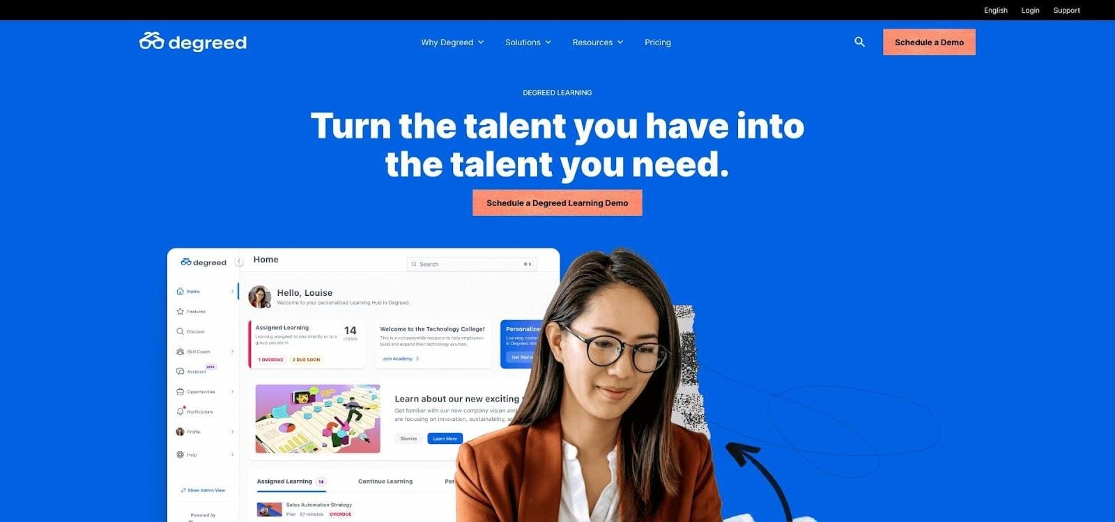 Degreed does more than recommend a course. It builds a living skills profile for every employee, then maps that data against thousands of internal and external resources to close gaps quickly.