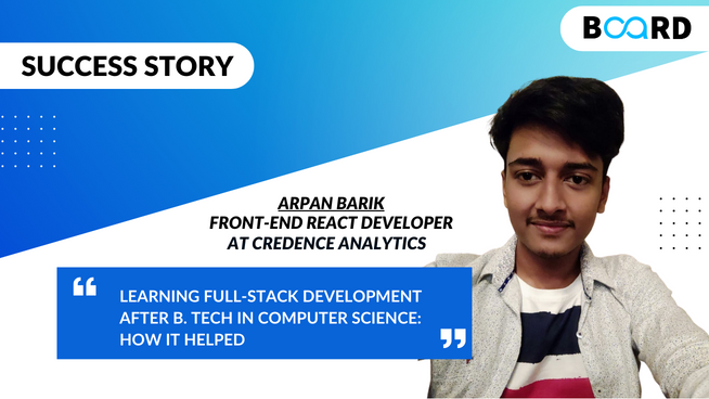 By - Arpan Barik, Board Infinity Alumni 1. Early Career Journey My name is Arpan Barik. I am from West Bengal. My dre